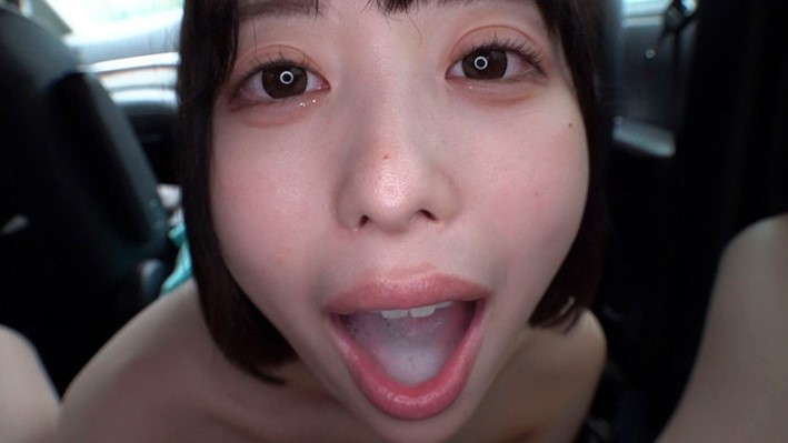 「あのね、外で飲んでみたい」精子を口に含んだまま服を着て車外に出て、車の通りの多い歩道でごっくん!