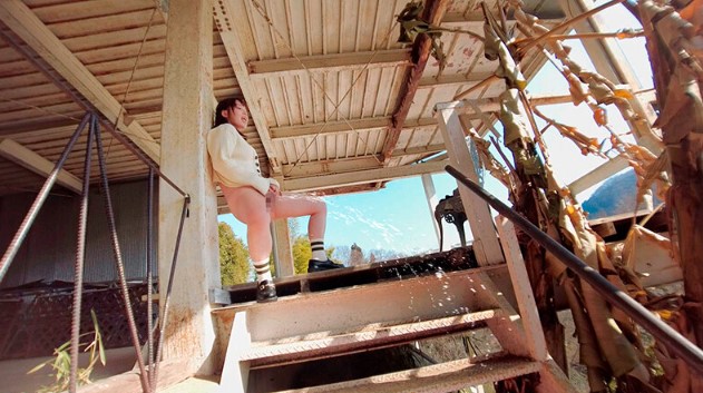 人のいない山の上にある建物にやって来て、自ら乳首を弄りながら「ムズムズしてきた…」